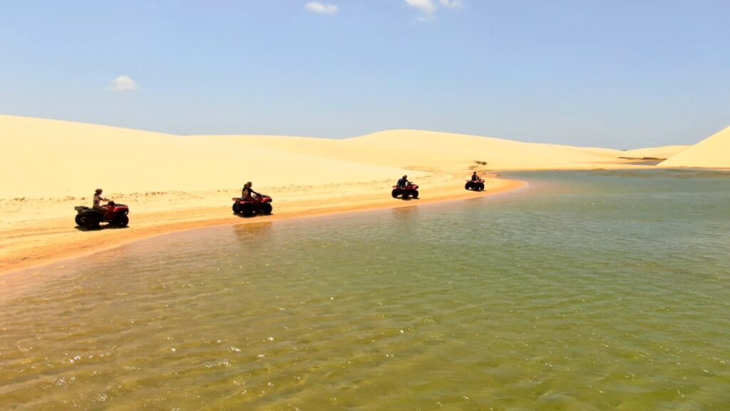 O passeio de quadriciclo nos Lençóis Maranhenses é uma experiência emocionante para quem gosta de aventura e contato com a natureza. Durante o percurso, os visitantes percorrem trilhas de areia e paisagens impressionantes da região.